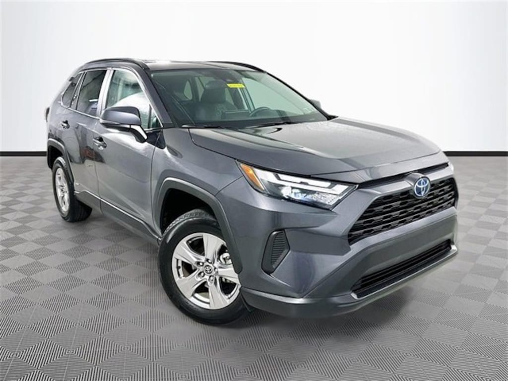 RAV4 Hybrid XLE, Toyota Gold Certified Certified, 2.5L 4-Cylinder, AM/FM Stereo, Driver door bin, Driver vanity mirror, Radio data system, 4-Wheel Disc Brakes, 6 Speakers, ABS brakes, Air Conditioning, Alloy wheels, AM/FM radio: SiriusXM, Apple CarPlay/Android Auto, Auto High-beam Headlights, Automatic temperature control, Axle Ratio: TBD, Brake assist, Bumpers: body-color, Delay-off headlights, Dual front impact airbags, Dual front side impact airbags, Electronic Stability Control, Emergency communication system: Safety Connect with 1-year trial, Exterior Parking Camera Rear, Fabric Seat Trim (FA), Four wheel independent suspension, Front anti-roll bar, Front Bucket Seats, Front Center Armrest, Front dual zone A/C, Front fog lights, Front reading lights, Front Sport Seats, Fully automatic headlights, Heated door mirrors, Illuminated entry, Knee airbag, Lane Departure Warning System, Low tire pressure warning, Occupant sensing airbag, Outside temperature display, Overhead airbag, Overhead console, Panic alarm, Passenger door bin, Passenger vanity mirror, Power door mirrors, Power driver seat, Power steering, Power windows, Rear anti-roll bar, Rear seat center armrest, Rear window defroster, Rear window wiper, Remote keyless entry, Roof rack: rails only, Speed control, Speed-sensing steering, Split folding rear seat, Spoiler, Steering wheel mounted audio controls, Telescoping steering wheel, Tilt steering wheel, Traction control, Trip computer, Turn signal indicator mirrors, Variably intermittent wipers, Wheels: 17 x 7.0J Silver Aluminum Alloy, RAV4 Hybrid XLE, 2.5L 4-Cylinder, AM/FM Stereo, Driver door bin, Driver vanity mirror, Radio data system.