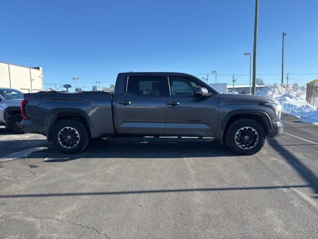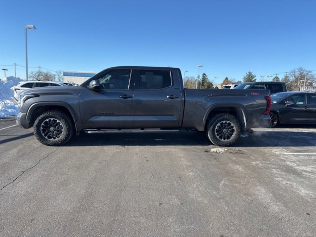 Tundra SR5, 4D CrewMax, 3.4L V6, 4WD, Magnetic Gray, Boulder, 18 Alloy Wheels, 3.31 Axle Ratio, 32 Gallon Fuel Tank, 4-Way Adjustable Front Bucket Seats, 4-Wheel Disc Brakes, 9 Speakers, ABS brakes, Advanced Off-Road Technology Package, Air Conditioning, All Weather Floor Liners (TMS), Alloy wheels, AM/FM radio: SiriusXM, Apple CarPlay/Android Auto, Auto High-beam Headlights, Automatic temperature control, Bedside TRD Off Road Decal, Black Grille w/Chrome Surround, Blind Spot Monitor w/Lane Change Assist, Brake assist, Bumpers: body-color, Delay-off headlights, Driver door bin, Driver vanity mirror, Dual front impact airbags, Dual front side impact airbags, Electronic Stability Control, Emergency communication system: Safety Connect with 1-year trial, Exterior Parking Camera Rear, Fabric Seat Trim, Front & Rear Mud Guards, Front anti-roll bar, Front Bucket Seats, Front Center Armrest, Front fog lights, Front reading lights, Front wheel independent suspension, Fully automatic headlights, Heated door mirrors, Heated Leather Steering Wheel, Illuminated entry, Knee airbag, Low tire pressure warning, Mini-Tie Down (TMS), Multi-Terrain Back Monitor, Occupant sensing airbag, Outside temperature display, Overhead airbag, Overhead console, Panic alarm, Parking Support Alert/Brake, Passenger door bin, Passenger vanity mirror, Power door mirrors, Power steering, Power windows, Radio data system, Radio: Audio Multimedia System, Radio: Premium Audio, Rear reading lights, Rear step bumper, Rear window defroster, Remote keyless entry, Safety Connect, Security system, SofTex Seat Trim, Speed control, Speed-sensing steering, Split folding rear seat, Steering wheel mounted audio controls, Tachometer, Telescoping steering wheel, Tilt steering wheel, Towing Package, Traction control, TRD Cast Aluminum Running Board (TMS), TRD Off-Road Premium Package, TRD Off-Road Suspension w/Bilstein Shocks, Trip computer, Turn signal indicator mirrors, Variably intermittent wipers, Voltmeter, Tundra SR5, 4D CrewMax, 3.4L V6, 4WD, Magnetic Gray, Boulder.