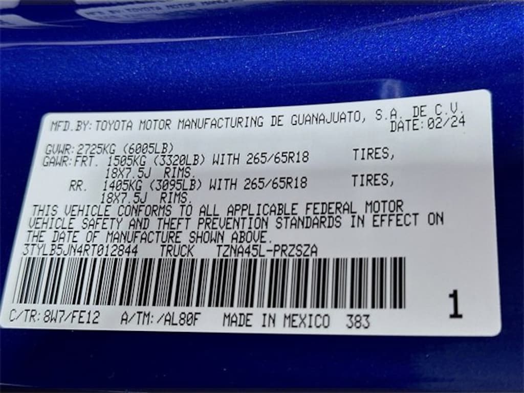 Toyota Gold Certified Certified, 4D Double Cab, 2.4L 4-Cylinder, 4WD, Blue, 3.583 Axle Ratio, 4-Wheel Disc Brakes, ABS brakes, Air Conditioning, Alloy wheels, AM/FM radio: SiriusXM, Anti-whiplash front head restraints, Apple CarPlay/Android Auto, Auto High-beam Headlights, Auto-dimming Rear-View mirror, Brake assist, Bumpers: body-color, Driver door bin, Dual front impact airbags, Dual front side impact airbags, Electronic Stability Control, Emergency communication system: Safety Connect (1-year trial), Exterior Parking Camera Rear, Four wheel independent suspension, Front & Rear Mud Guards, Front anti-roll bar, Front Bucket Seats, Front Center Armrest, Front fog lights, Front reading lights, Fully automatic headlights, Heated door mirrors, Illuminated entry, JBL Premium Audio, Knee airbag, Low tire pressure warning, Occupant sensing airbag, Outside temperature display, Overhead airbag, Overhead console, Panic alarm, Passenger door bin, Power door mirrors, Power steering, Power windows, Rear step bumper, Rear window defroster, Remote keyless entry, Speed control, Speed-sensing steering, Split folding rear seat, Steering wheel mounted audio controls, Tachometer, Telescoping steering wheel, Tilt steering wheel, Traction control, Trip computer, Variably intermittent wipers, 4D Double Cab, 2.4L 4-Cylinder, 4WD, Blue.